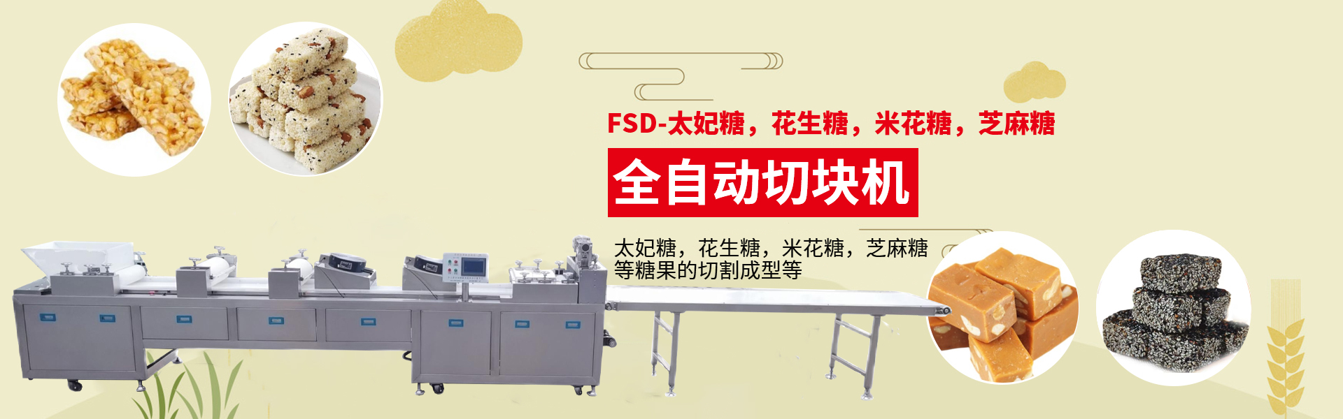 研制開(kāi)發(fā)沙琪瑪、雪花酥、米花糖、花生酥等休閑食品機(jī)械專業(yè)生產(chǎn)廠家全國(guó) 服務(wù)熱線: